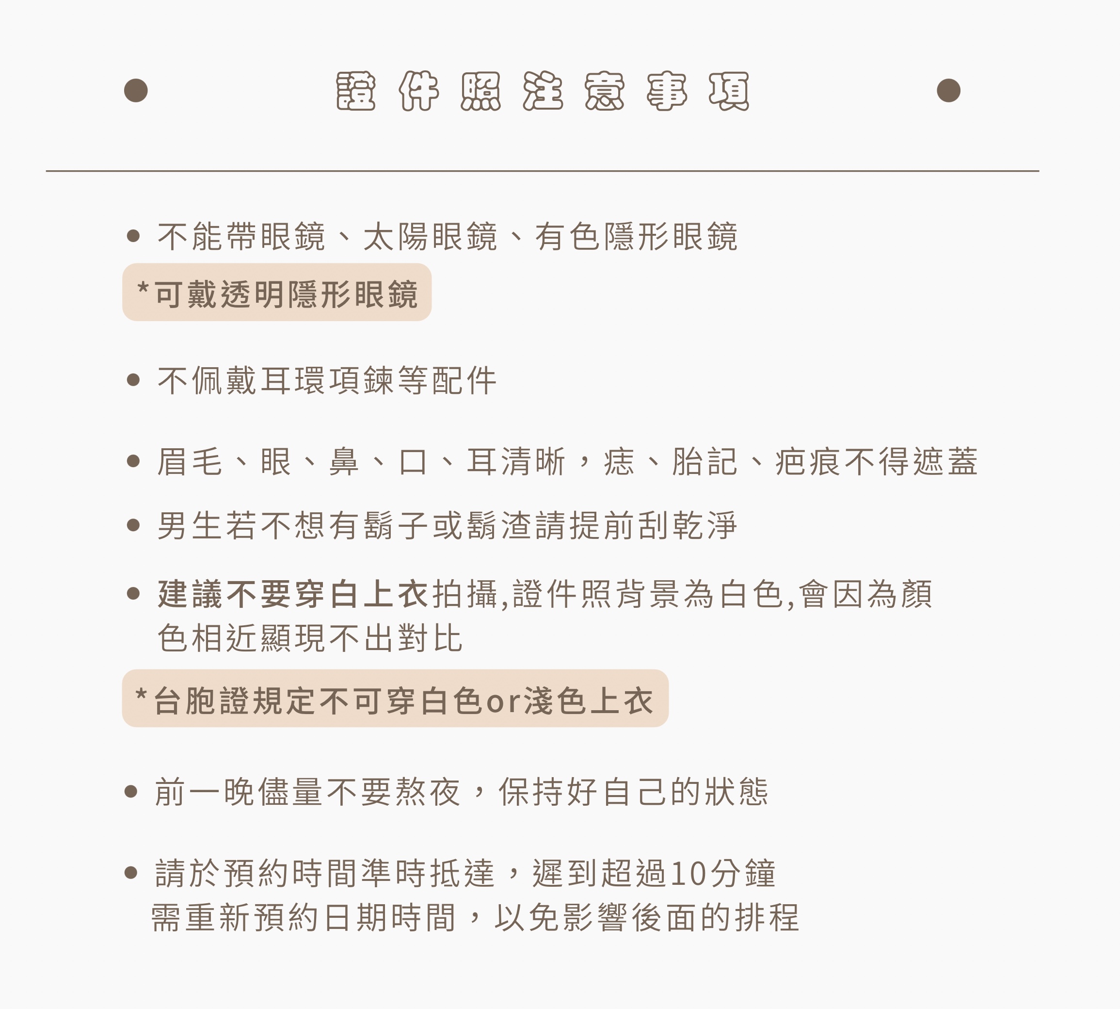 拍攝證件照注意事項
